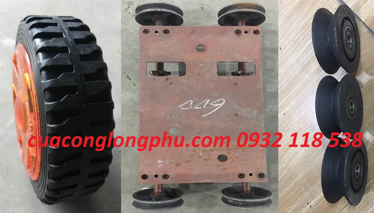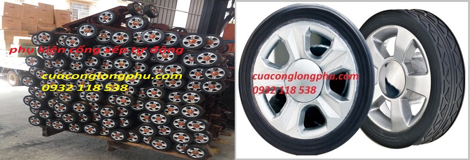 Bánh xe cổng xếp tự động sử dụng vật liệu cao su đặc chủng, tăng cường độ bền cao.