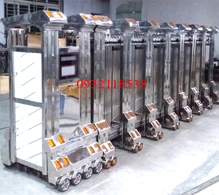 + Cổng xếp inox tự động có ray hay không có ray đều có: