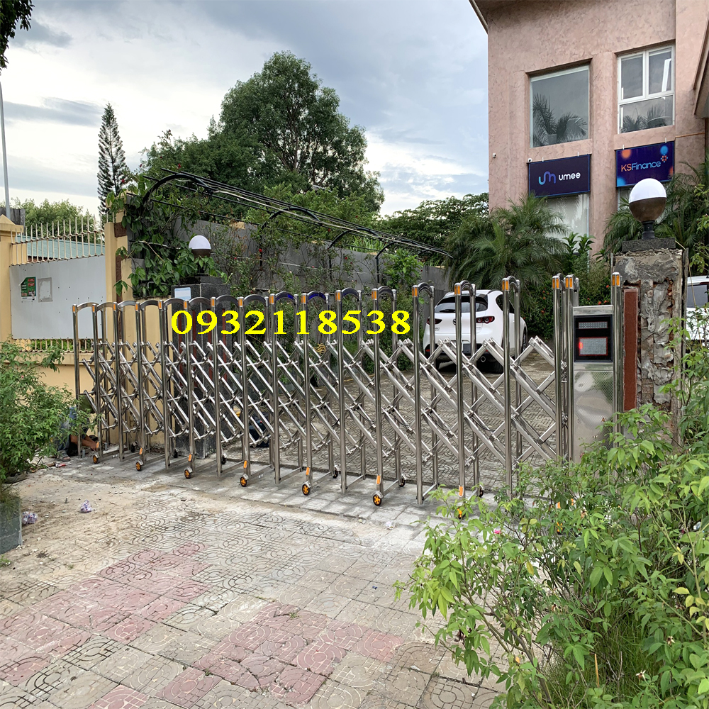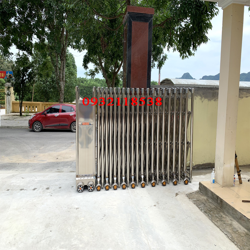 - Cổng xếp inox tự động có ray
