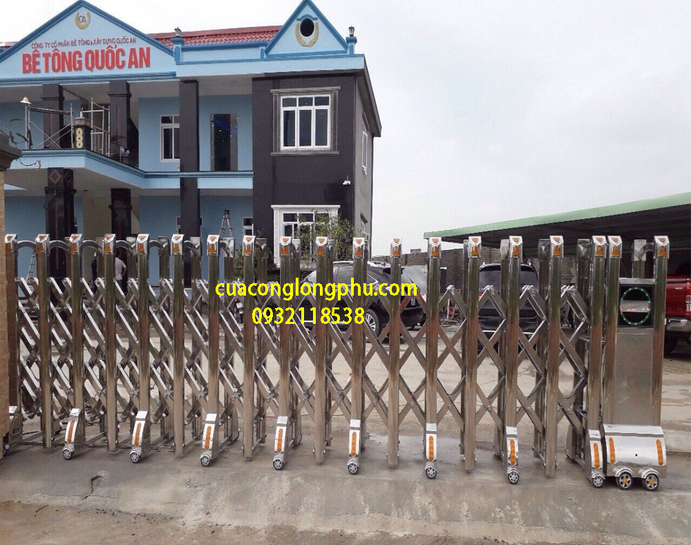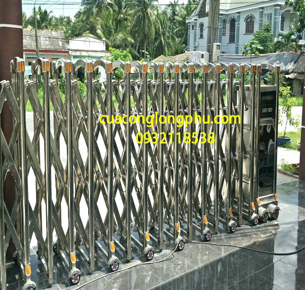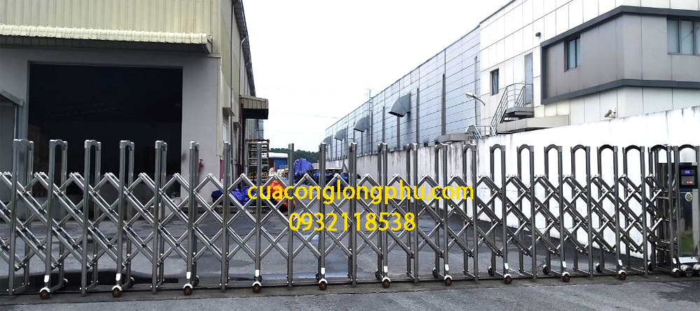 Cổng xếp inox tự động do Long Phú sản xuất chủ yếu dùng từ vật liệu inox 304.