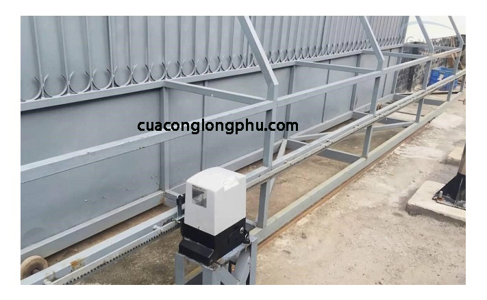 Cổng lùa tự động có romot để dễ dàng vận hành cổng, khi mất điện thì sử dụng khóa cơ để chuyển sang chế độ đẩy tay.