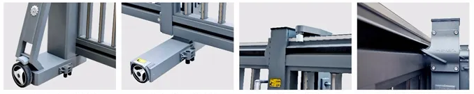+ Đầu máy có thiết bị định vị đóng/mở cổng bằng cảm ứng từ. Ngoài ra còn có thiết bị dẫn hướng giúp cổng có thể trở về trung tâm đường ray và thiết bị cảm ứng chống kẹp tay.