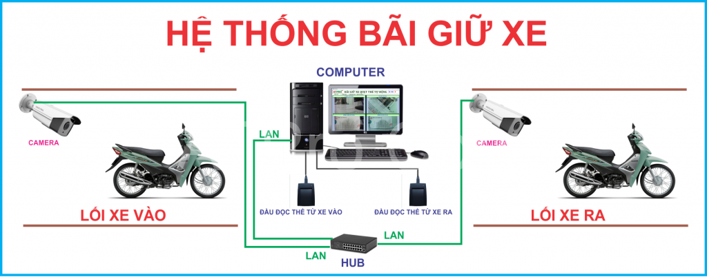 + Khi có phương tiện tiến vào cổng thì thanh chắn barie sẽ được nâng lên, do nhân viên quản lý xe quẹt thẻ từ. Tiếp đến phương tiện sẽ dừng lại ở giữa hai gờ giảm tốc và nhận thẻ từ. Đồng thời camera sẽ chụp lại người sử dụng phương tiện và biển số xe, thông tin này sẽ được lưu vào dữ liệu và có hiện ngày giờ rõ ràng.